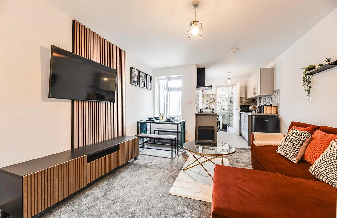 2 Flats Near Coop Arena & Etihad Stadium vous invite dans 2 chambres à coucher. Il y a aussi 2 salles de bain et une douche. Un sèche-cheveux et des draps de bain sont disponibles.